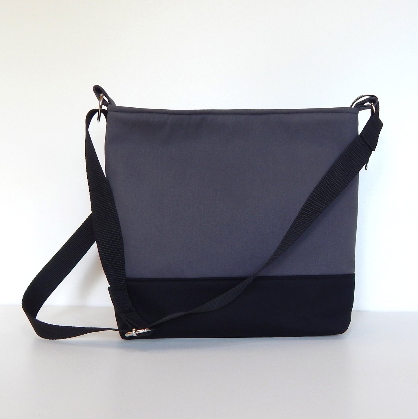 Dimensions: height: 27 cm - 10,5" , width: 34 cm - 13,3", bottom: 25 cm X 8 cm (10" X 3"), zipper length : 26 cm (10") full length:34 cm - 13,3" , shoulder strap : width 3 cm (1,2") length min. 63 cm (25") max 113 cm ( 44,5")