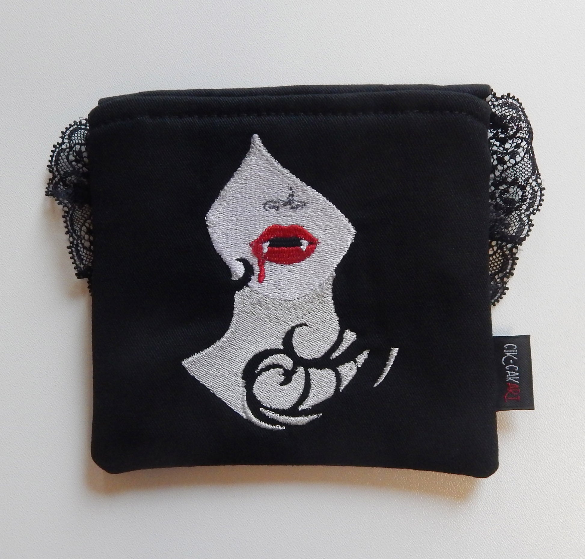 Add a touch of dark charm to your everyday essentials with this handcrafted gothic coin purse. Inspired by retro horror aesthetics and vampire lore, it's the perfect accessory for alternative fashion lovers.