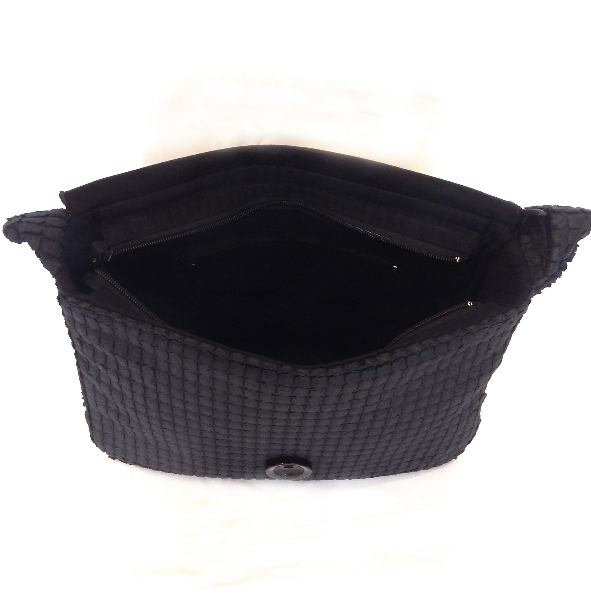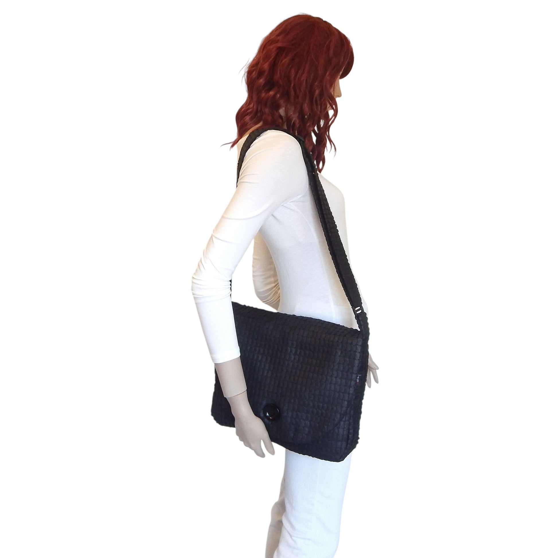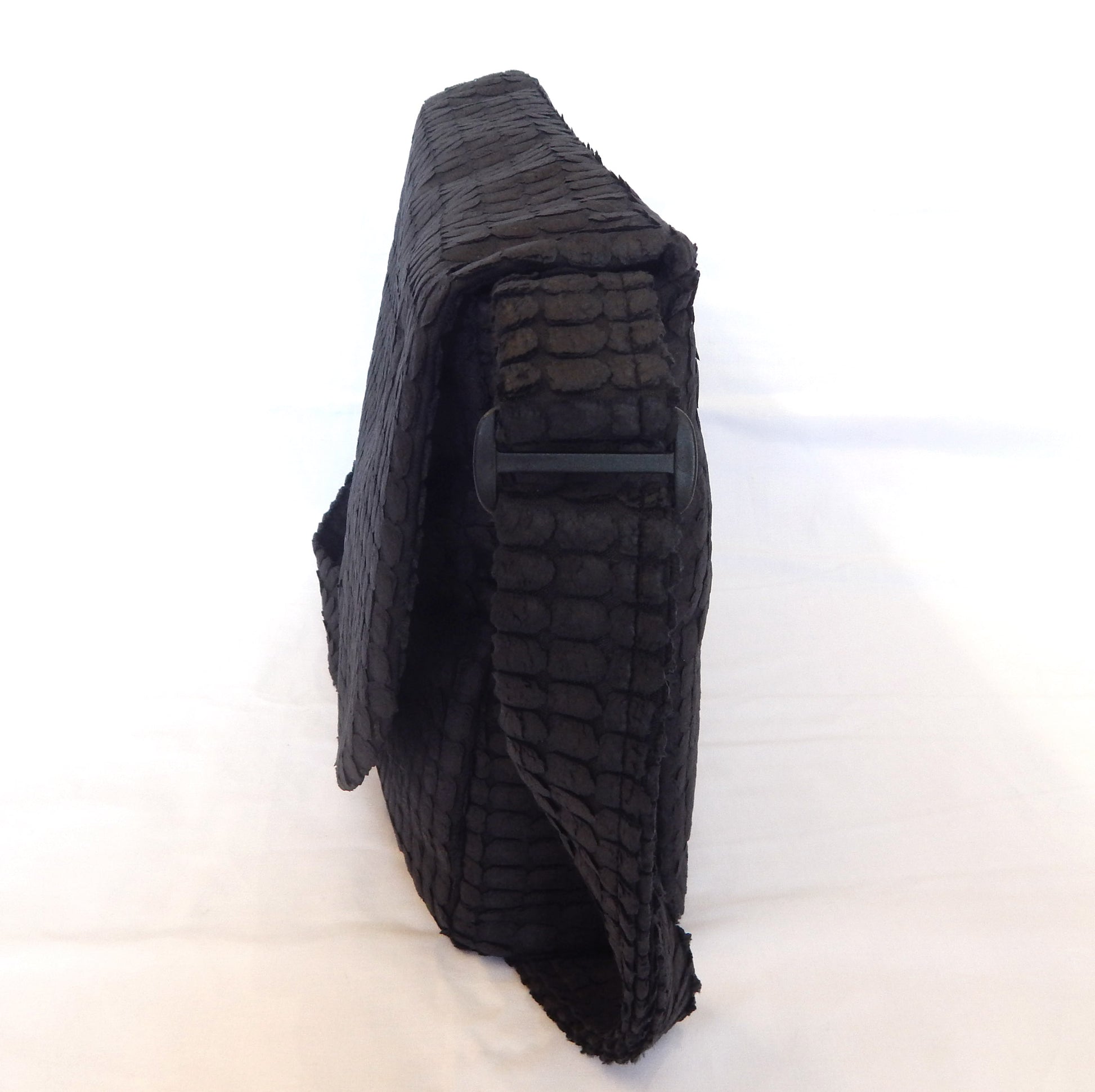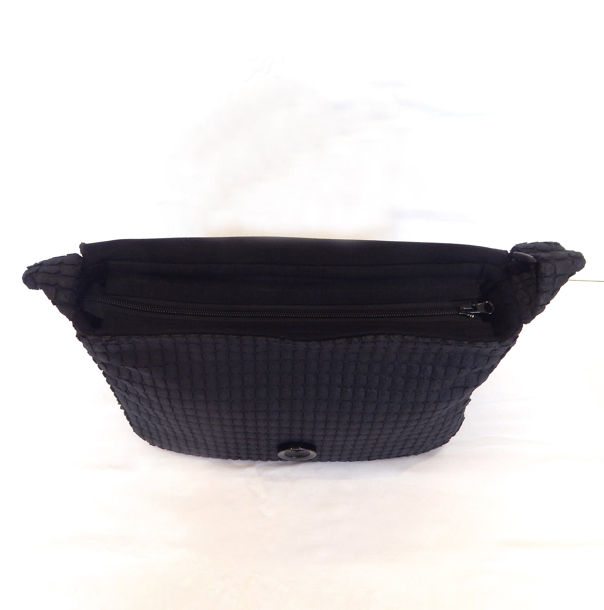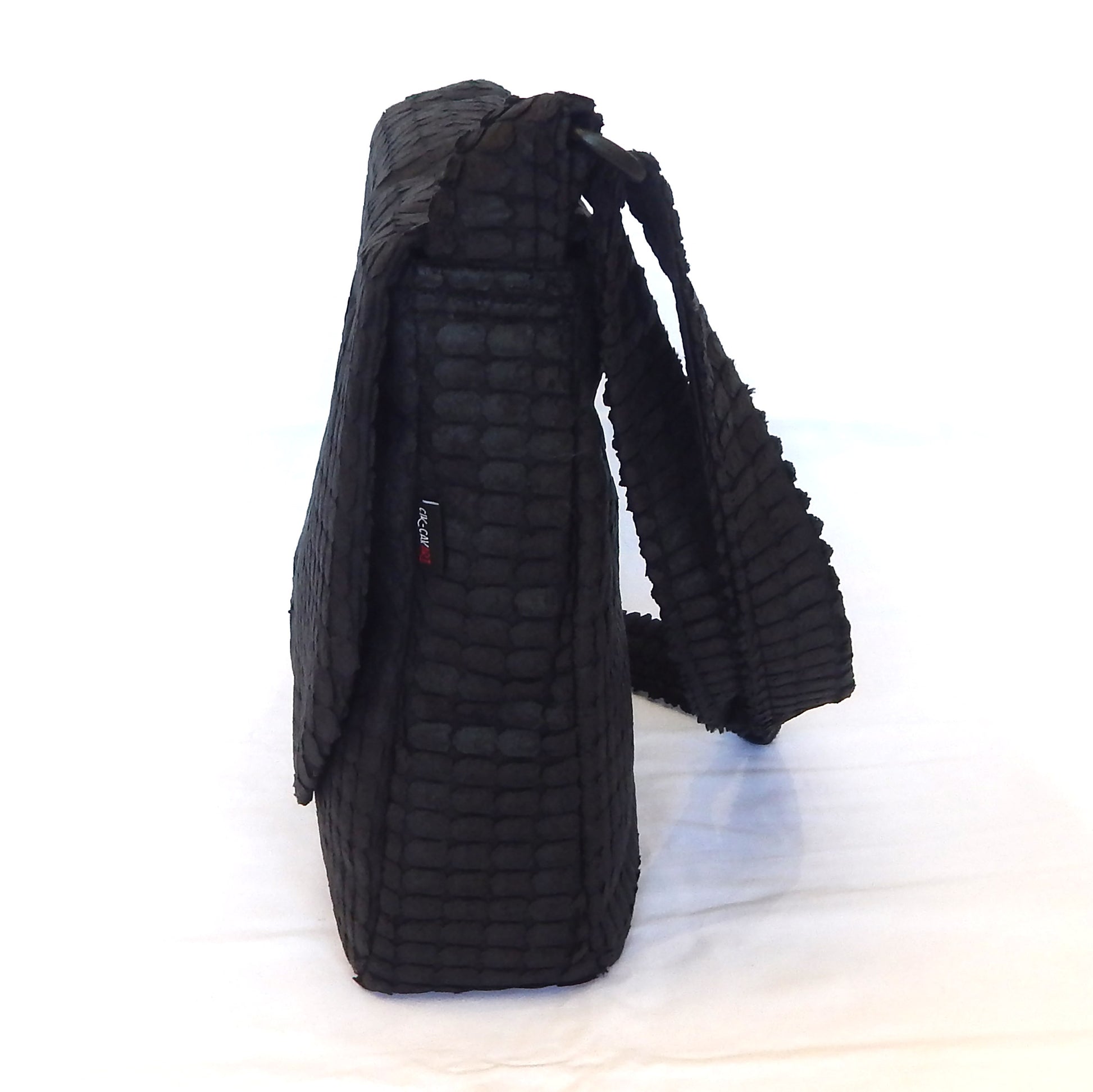 Elevate your everyday look with this striking large shoulder bag, crafted from a unique textured black polyester that feels both delicate and edgy. The design evokes a stylized snake—subtle, spooky, and undeniably cool. It’s a “less is more” statement piece that balances softness with a bold, cold elegance.