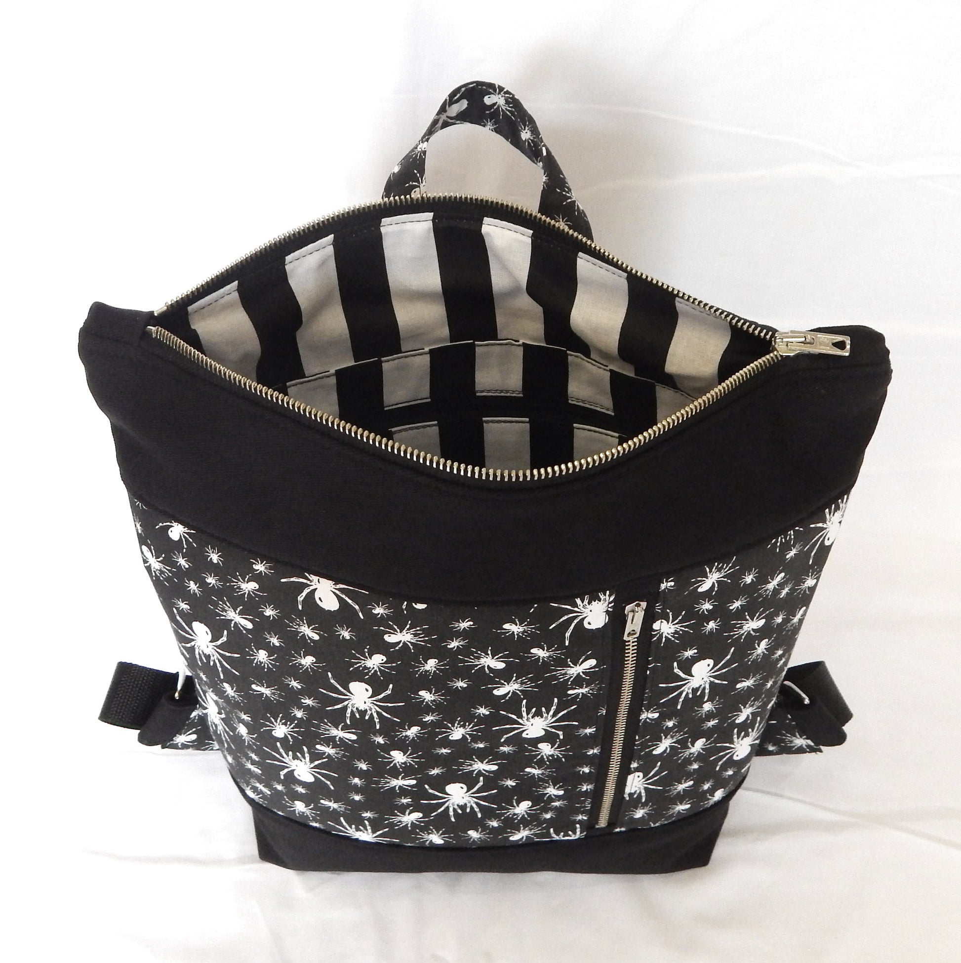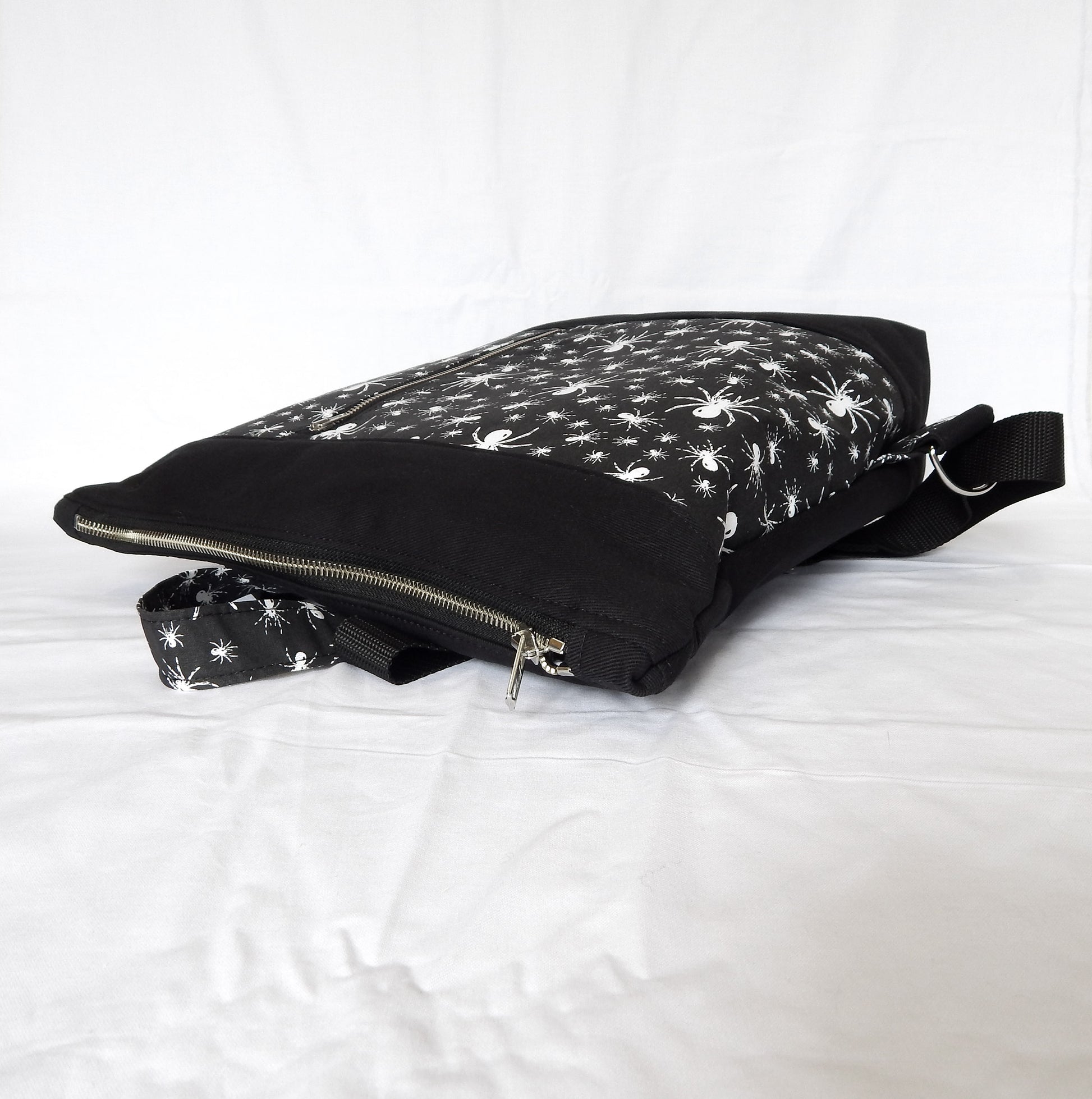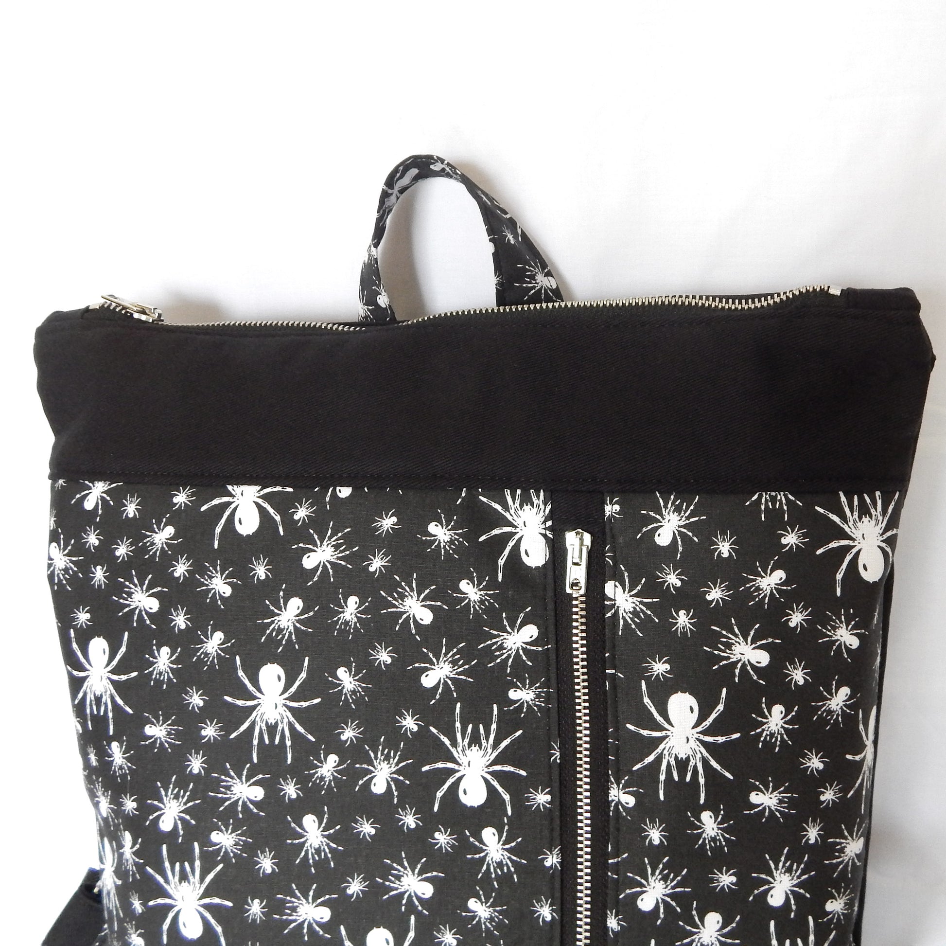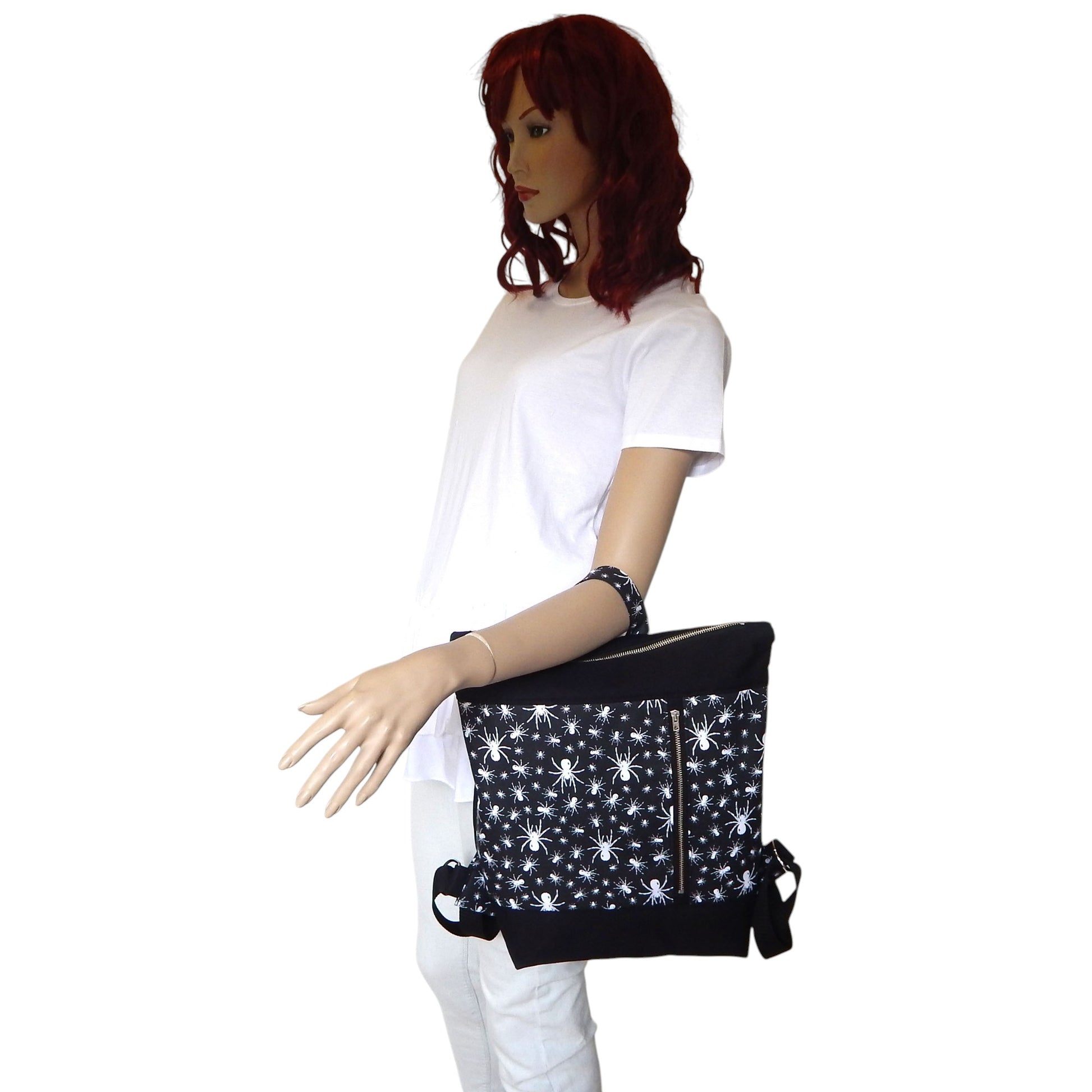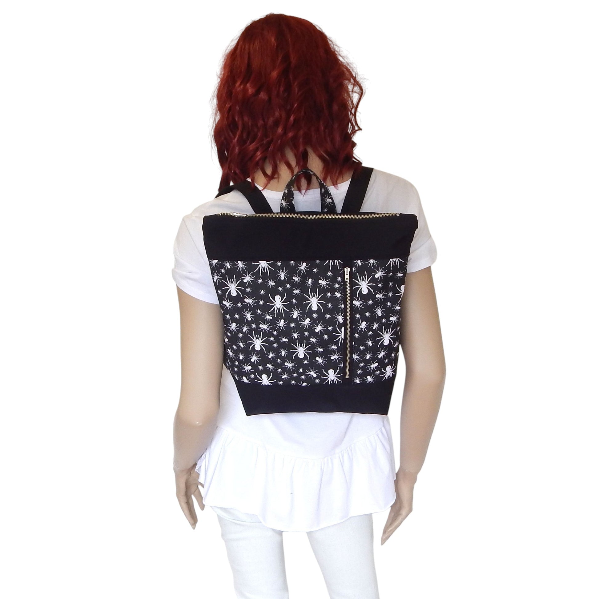 Make a bold statement with this handmade Spider Canvas Backpack—a fusion of gothic charm and alternative style! Crafted from high-quality black cotton twill with a spider canvas finish, this bag balances durability and uniqueness.