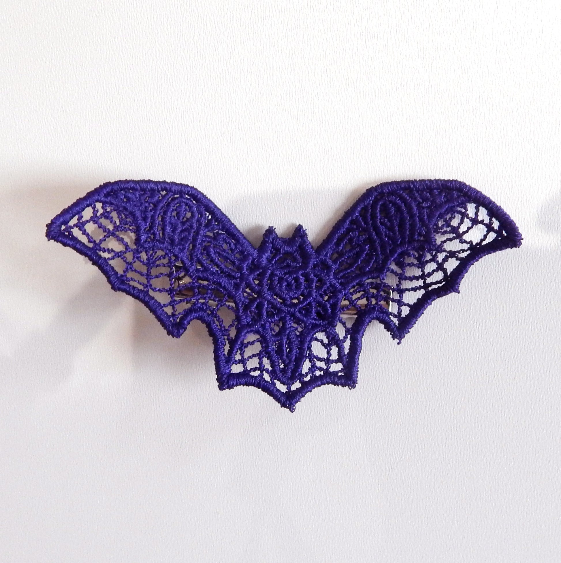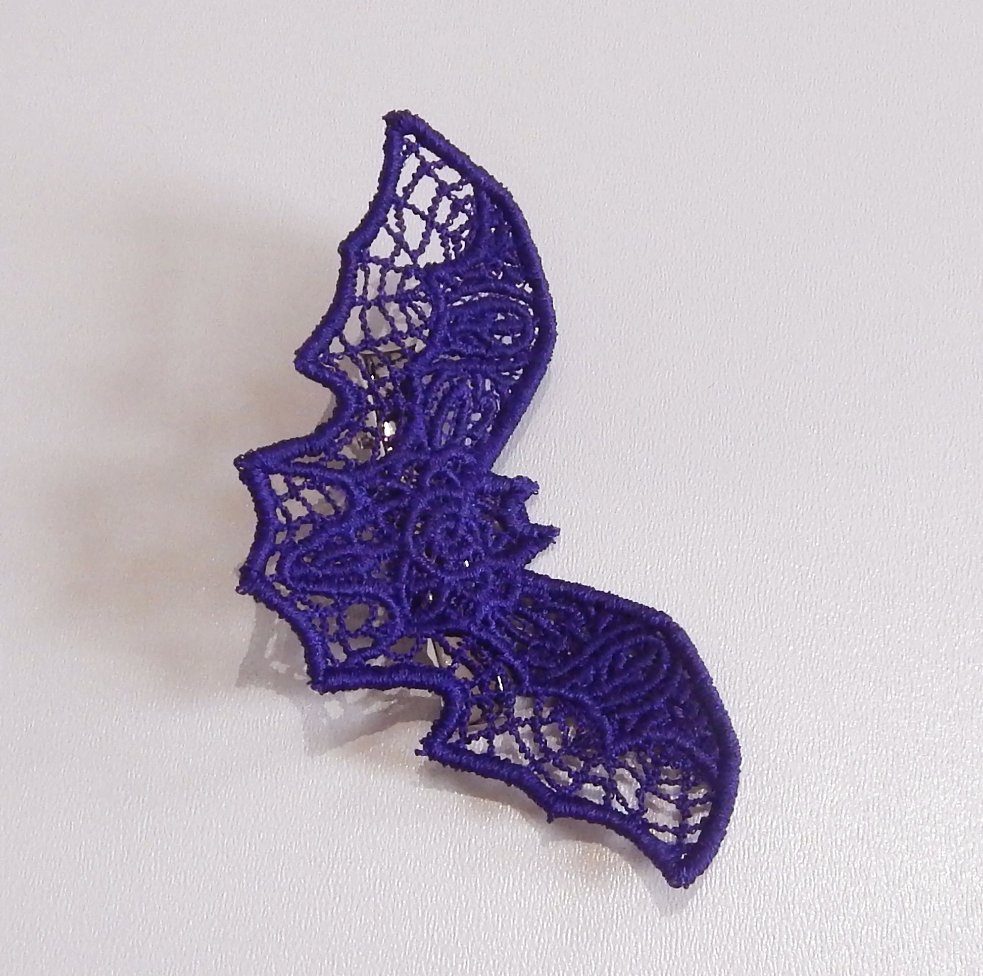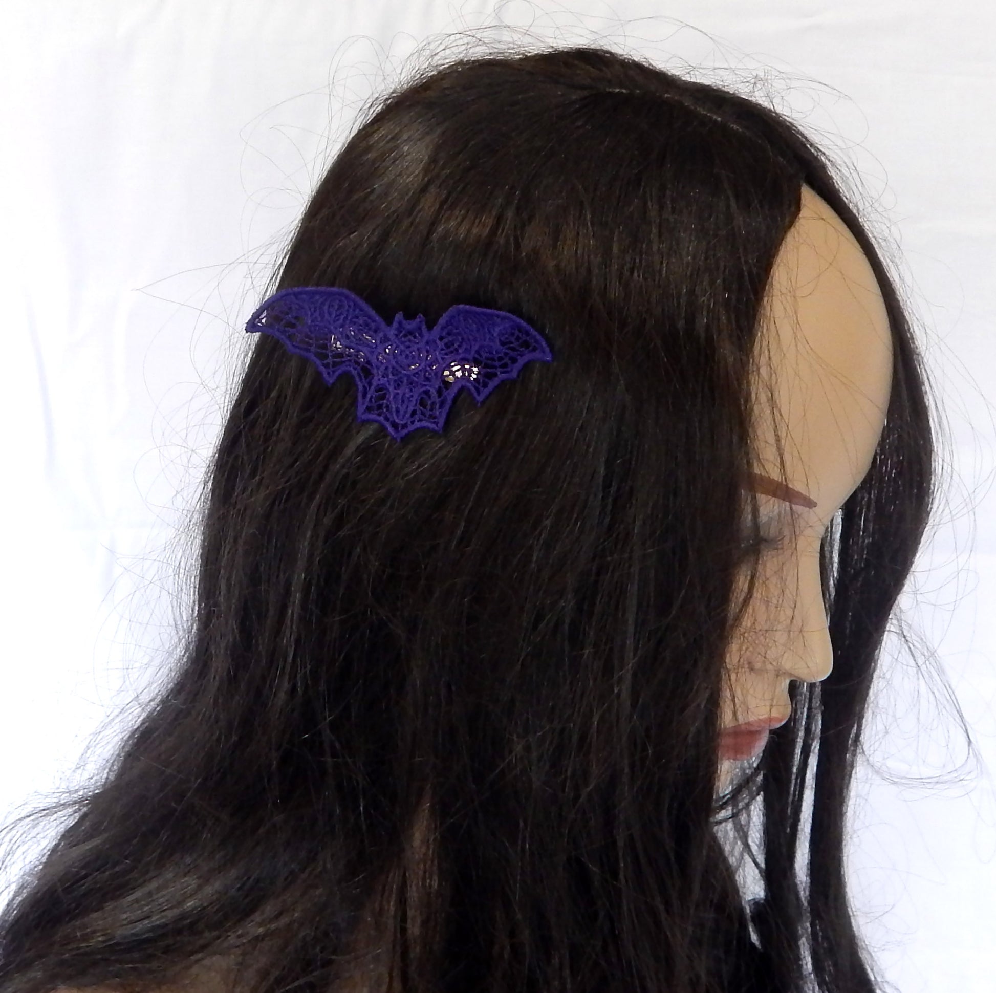 Embrace the mystery of the night with this handcrafted gothic bat hair clip, made from luxurious deep purple lace and embroidered with precision. Each bat is machine-stitched and hand-finished, giving it a unique texture and character that sets it apart from mass-produced accessories.
