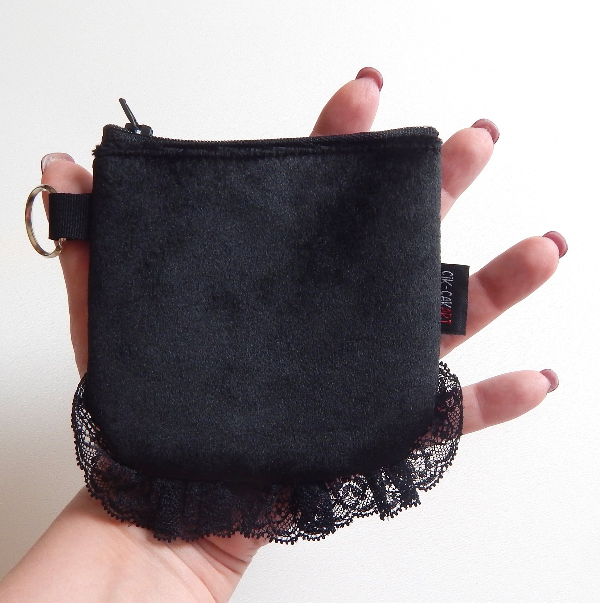 Step into the shadows with this gothic-inspired black velvet coin purse, black lace bordered, designed for those who walk the line between elegance and enchantment. Measuring 11x11.5 cm, this compact pouch is perfect for storing coins, crystals, tarot charms, or other small treasures that deserve a touch of magic.
